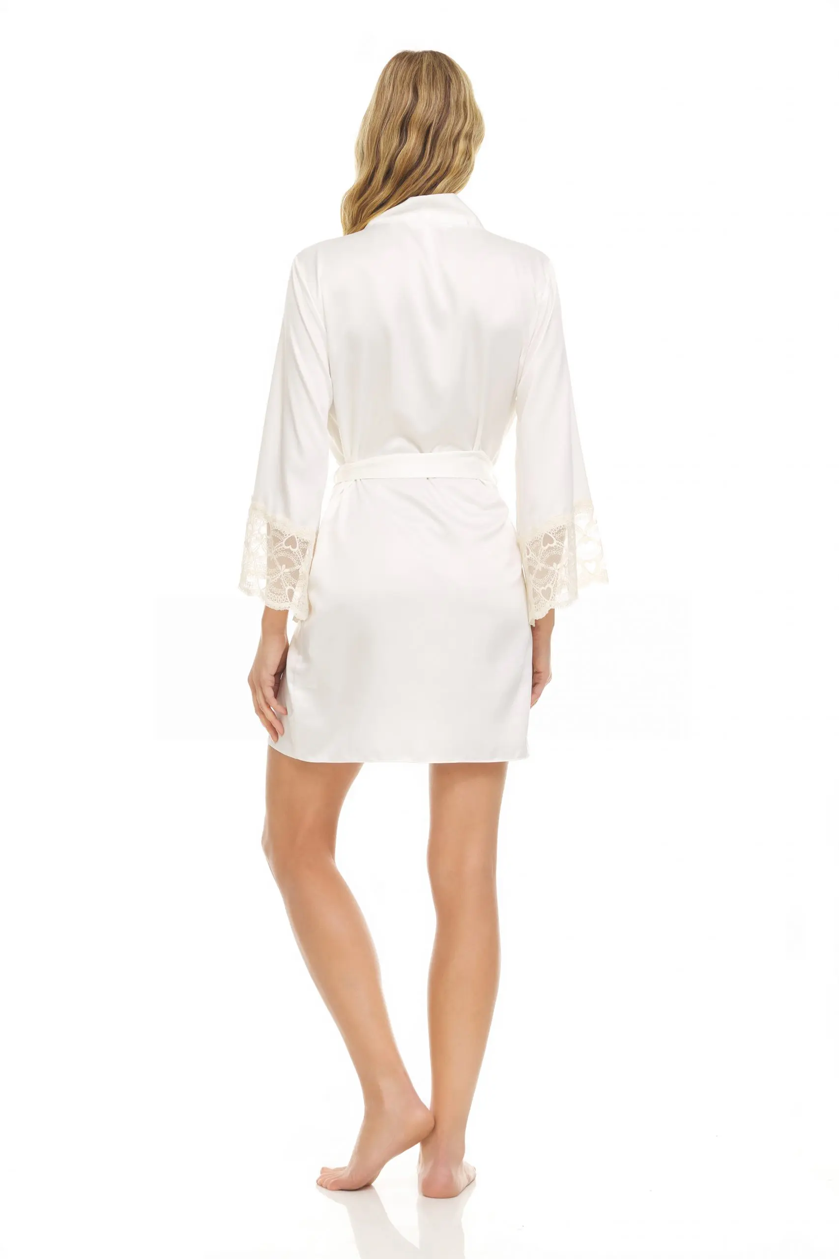 -wrap robe satin charmeuse lace on the cuff .